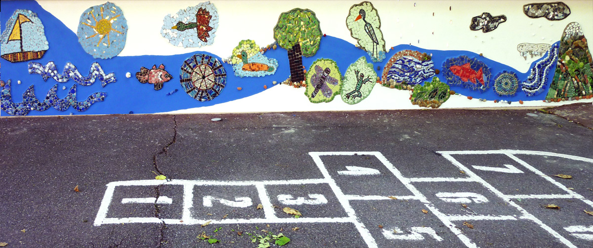 La construction d’une fresque mosaïque sera, pour les enfants, l’ aboutissement d’un travail personnel et coopératif qui inscrira dans le temps «une trace d’eux-mêmes» valorisante.